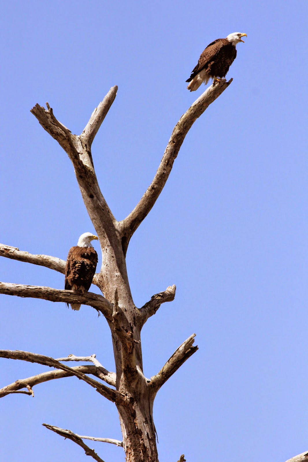 Harriet vocalizing and PB vocalizing back. They sit there for about 10 mins then with a squeal Harriet leaves towards the east and is flying around then PB takes off in the same direction. We can see them flying around ,up higher then over towards the river. Not sure what Harriet saw but we did see a bunch of Vultures fly up when Harriet and PB went their way..LOL I left not to long after that.